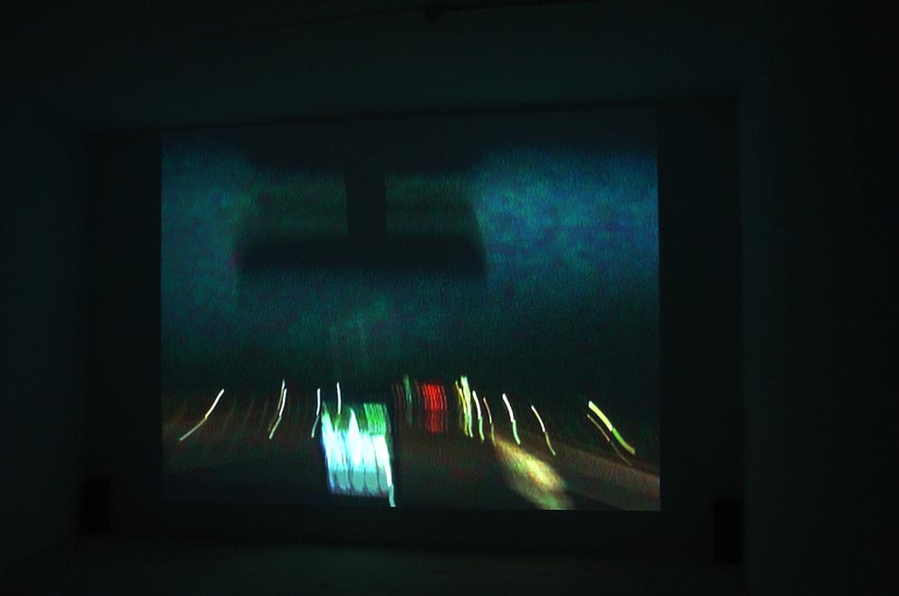 after 800 metres take the motorway.. is a video-sound piece shot on the move.  This roadwork explores the language of the super highway in which the utopian freedom of overland travel, driving, infinite motorways and anonymity is overshadowed by the satellite gaze of the GPS (Global Positioning System).