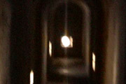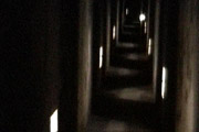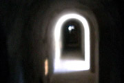 A historical erasure of time, identity and place.  A slow timed walk in a tunnel underlying the historic Terezienstadt extermination camp (Czech Republic) becomes metonymy for time-lap; for the erasure of difference; for life on one end and death at the other end of the tunnel.  The singular vision of the ideological "war-machine" is conceptualised in the coming together of the political machine (Third Reich), the architectural machine (war-tunnel), and the technological machine (video camera).  Footsteps are converted into high-pitched sounds evoking the psychological angst of a last journey through this passage.