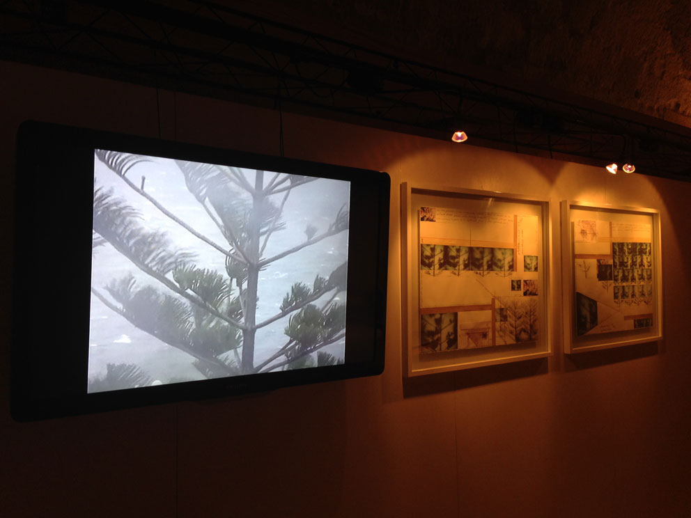 An 11-minute looped video in which a conifer in a wild storm fades into condensation, and resumes cycle. The work redefines landscape through delocalisation, temporality, vulnerability and change. Sound: collage of global weather reportage.